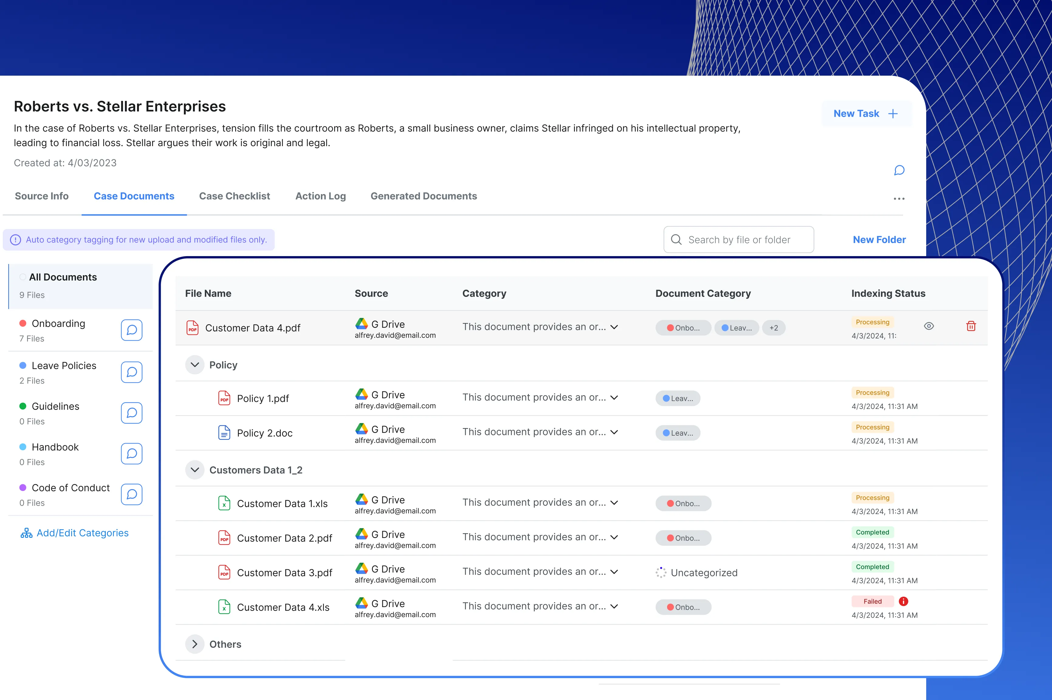 With SDAI’s built-in assistant, you can query your own files in plain language and get instant answers, backed by case data. Faster insights, without sifting through paper.